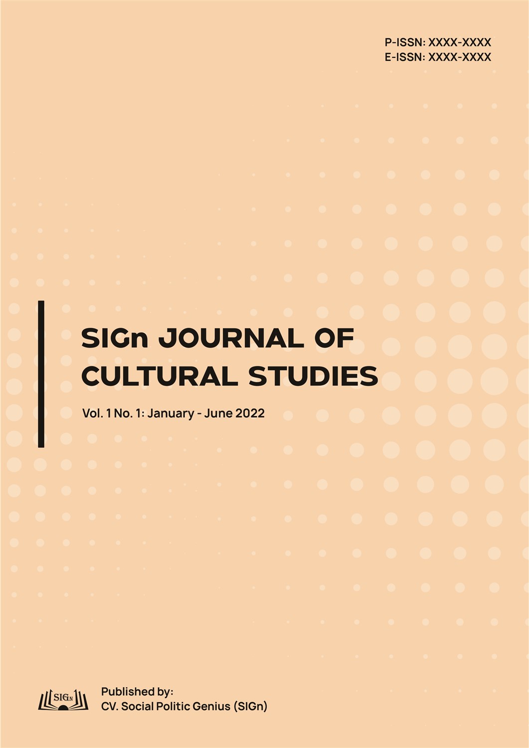 SIGn Journal of Cultural Studies is a scientific publication published every January – June and July – December. The published article is the result of selection with a double–blind review system. SIGn Journal of Cultural Studies accepts manuscripts in the form of research results, theoretical studies, theoretical applications, conceptual ideas, and book reviews relevant to the Multidisciplinary of Cultural Studies. In addition, the Editor of SIGn Journal of Cultural Studies processes manuscripts that have never been published before.