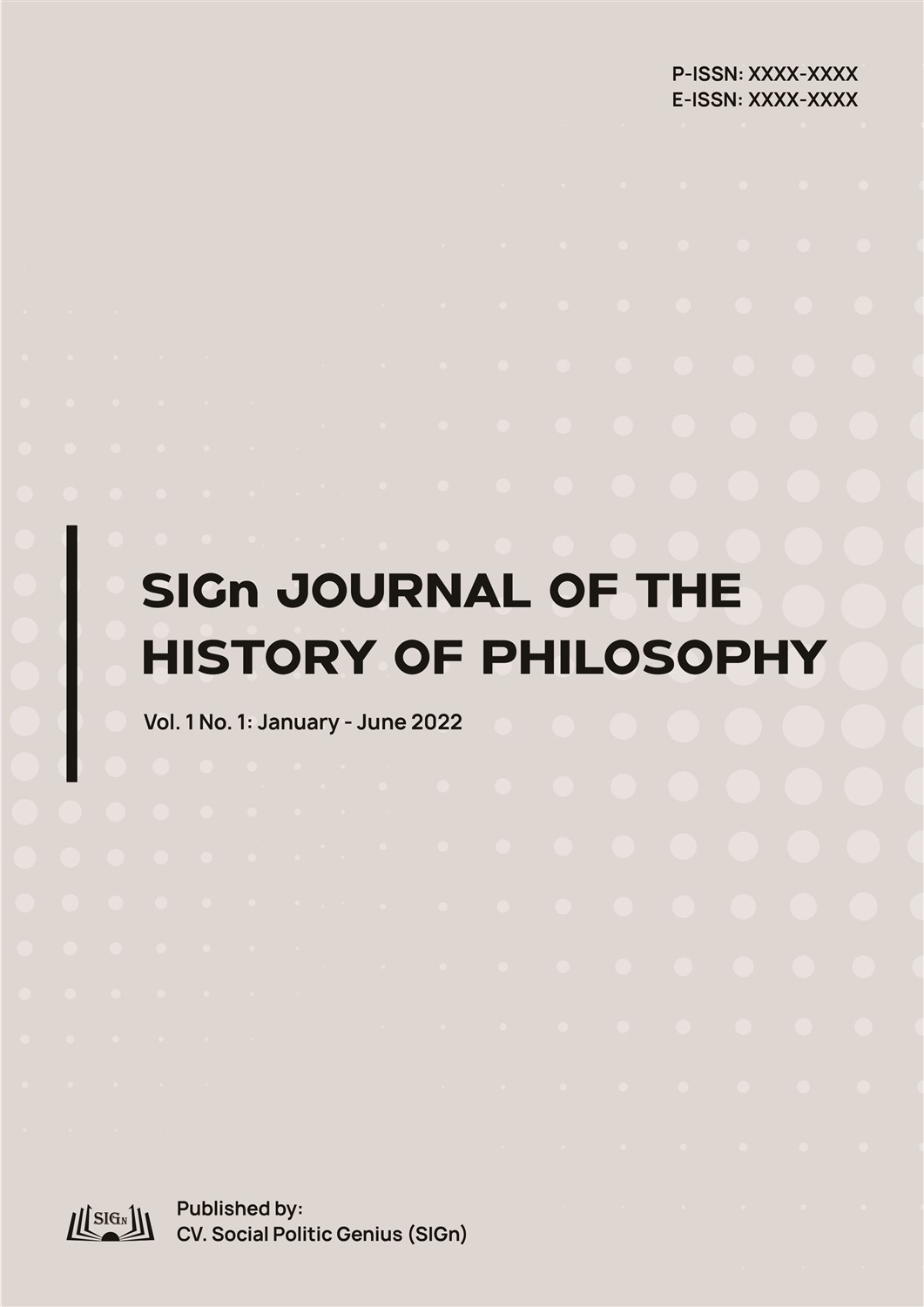 SIGn Journal of the History of Philosophy is a scientific publication published every January – June and July – December. The published article is the result of selection with a double–blind review system. SIGn Journal of the History of Philosophy accepts manuscripts in the form of research results, theoretical studies, theoretical applications, conceptual ideas, and book reviews relevant to the Multidisciplinary of History and Philosophy. In addition, the Editor of SIGn Journal of the History of Philosophy processes manuscripts that have never been published before.